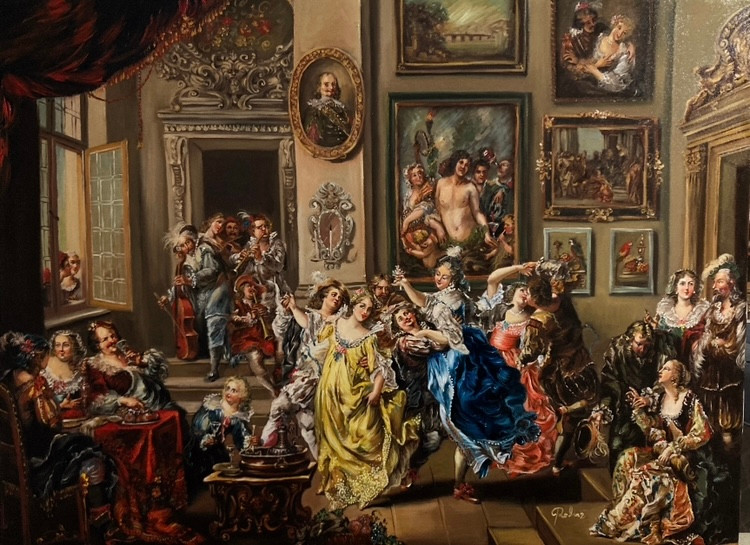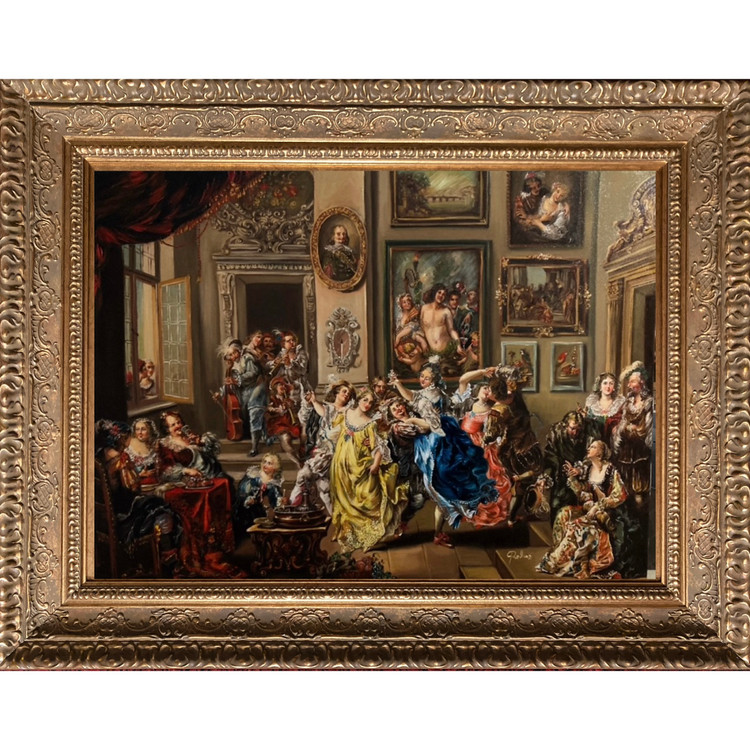 تابلو نقاشی، تابلو نقاشی کلاسیک، تابلو ‌رنگ روغن ، نقاشی کلاسیک طرح مجلسی (The dance scene in the palace)