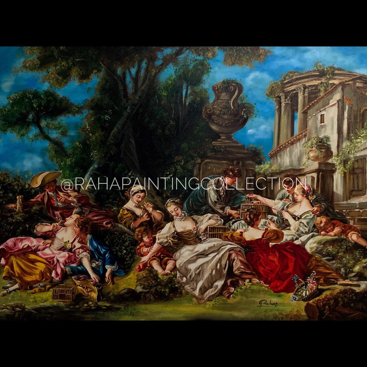 اصل این اثر با نام The Bird Catchers توسط نقاش فرانسوی بانام (1703-1770) François Boucher با تکنیک رنگ روغن روی بوم اجرا شده است.