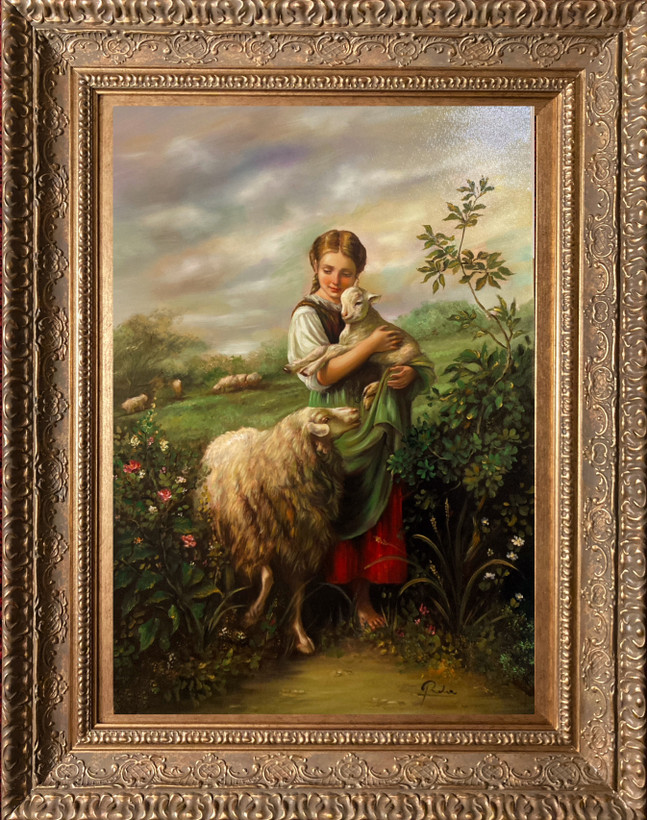 تابلو نقاشی، تابلو نقاشی کلاسیک، تابلو رنگ روغن ، نقاشی کلاسیک، طرح دختر چوپان (The Shepherdess)